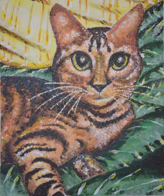 Painting Bengal Cat 20 Original Handmade Acrylic Painting On Canvas Modern Art By Mederos