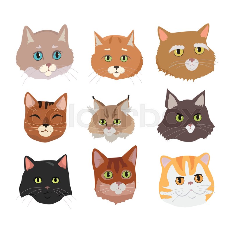 Breed Cat Outline Icons Black And White Vector On A White Background