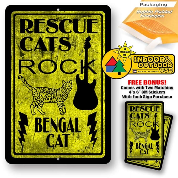 Amazon Com Rescue Cats Rock Bengal Cat Man Cave Home Sign