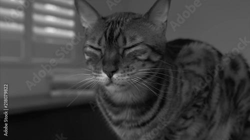 A Bengal Cat Squinting Its Eyes In A Creepy Black And White