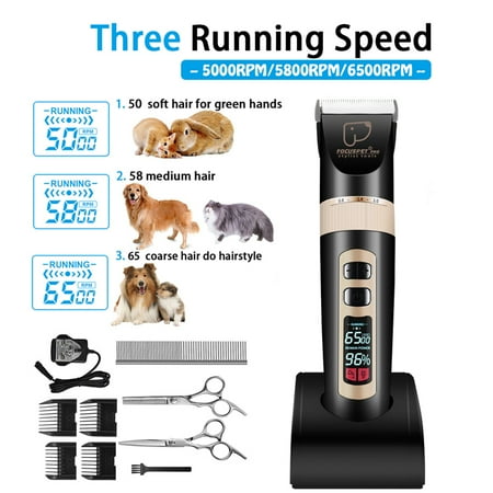 Focuspet 3 Speed Professional Pet Clippers Kit Pet Grooming Clippers Rechargeable Cordless 2 Charge Modes Low Noise Electric Led Dispaly Hair Trimming