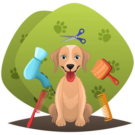 Cute Dog Groomer Salon Vector Illustration Pet Hair Salon
