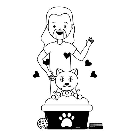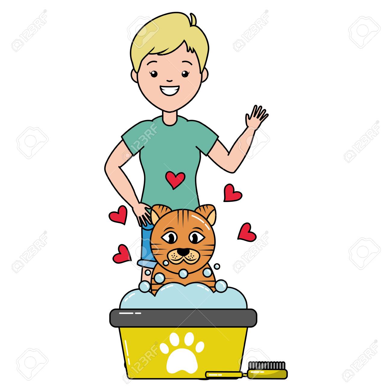 Man Pet Grooming Stock Vector Art Illustration Vector