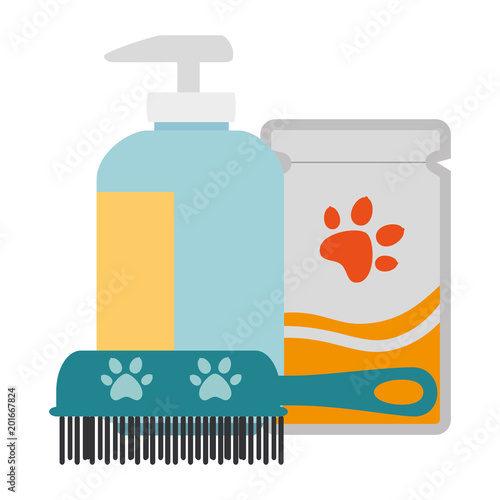 Add to likebox 79218076. Colorful seamless pattern with domestic animals and tools for pet care entertainment grooming on white background.