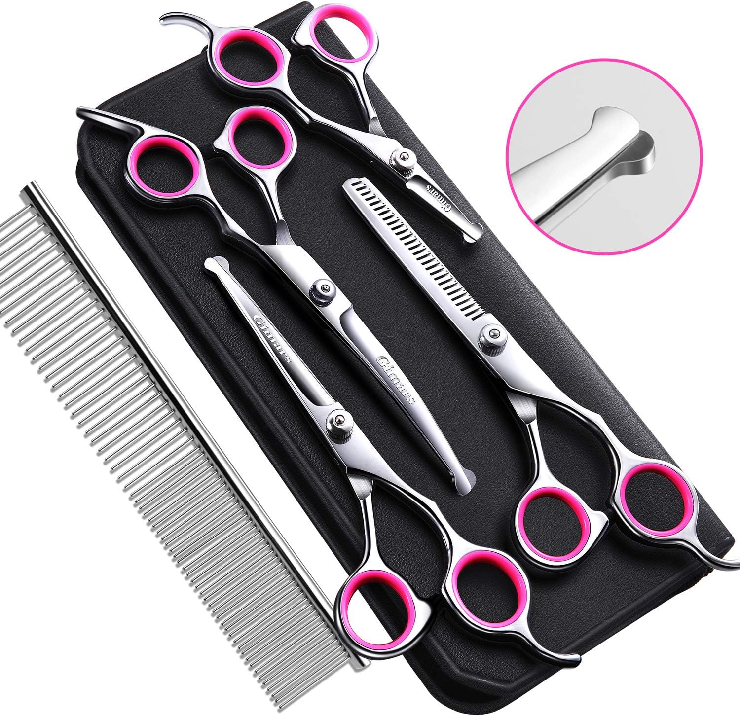 Gimars 4cr Stainless Steel Dog Grooming Scissors With Safety Round Tip Heavy Duty Thinning Straight Curved Shears With Comb Titanium Coated Pet