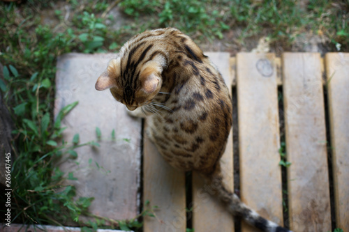 Bengal Cat Seen From Above Beautiful Fur With Spotted