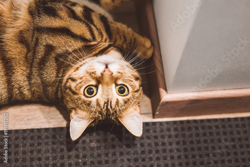 Cute Bengal Funny Cat Playing At Home With Small Toys Stock