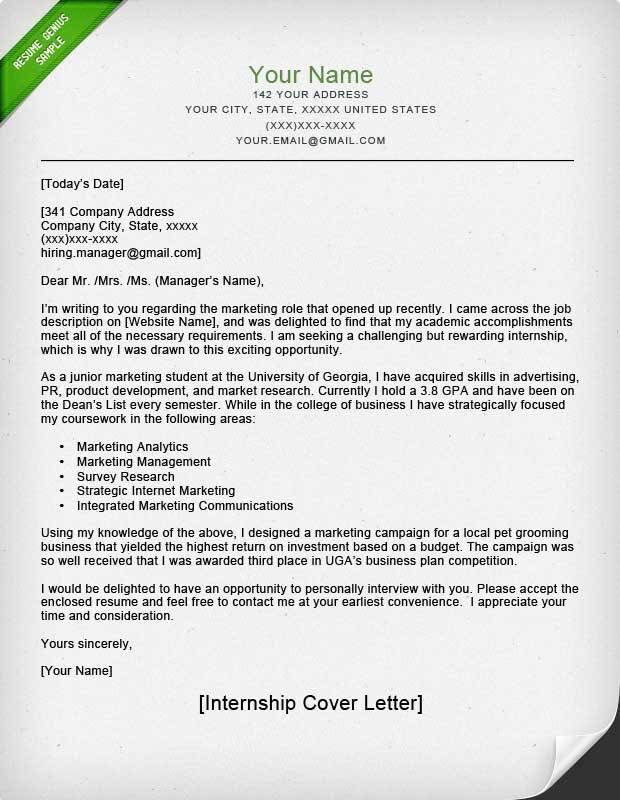 Cover Letter For Internship Example 4 Key Writing Tips