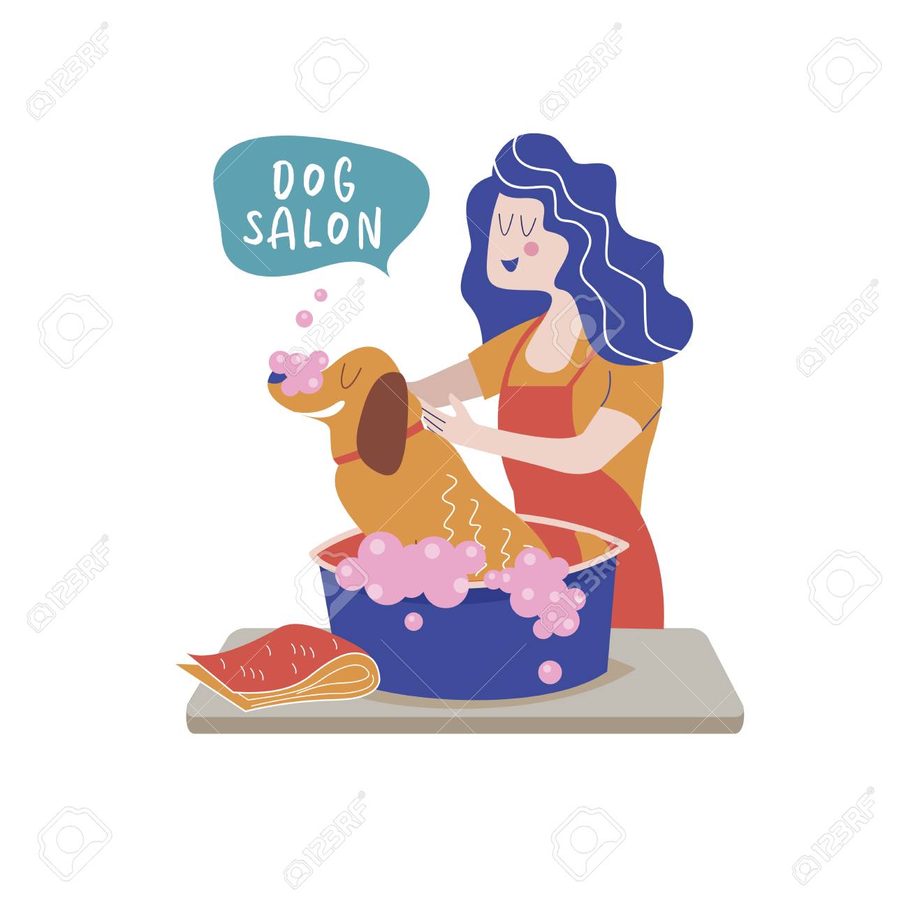 Woman With Dog Grooming Shop Stock Illustration Download
