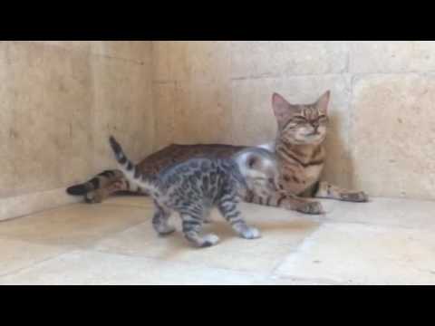 They were originally crossbred from a traditional bengal and a silver cat. Shes been flea and wormed treated she has beautiful markings with big spots silver in colour and will be a stunning cat when she grows older mum is a snow and so is dad both are registered but this litter isnt registered. Our beautiful bengal river and her two precious kittens in a very playful mood.