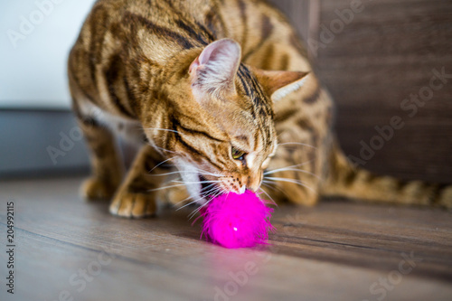 Beautiful Bengal Cat Playing With A Toy And Pressing It With
