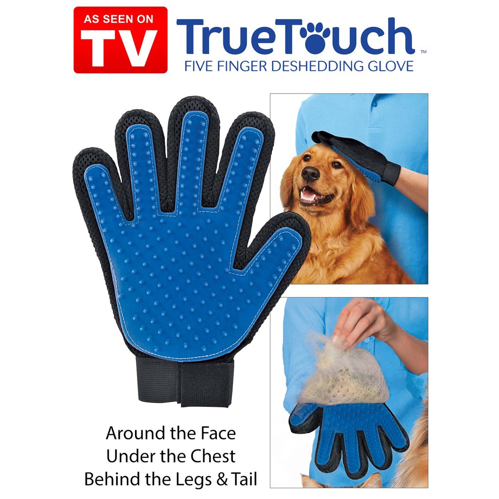True touch is an as seen on tv deshedding glove. Mimics the touch of your hand for a massage. As seen on tv lint.
