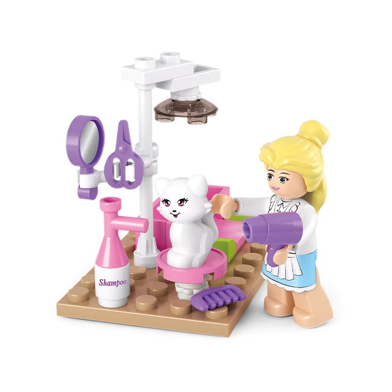 Terlaris City Girl Friends Pet Grooming Gas Station Puppy Dog House Horse Racing Model Building