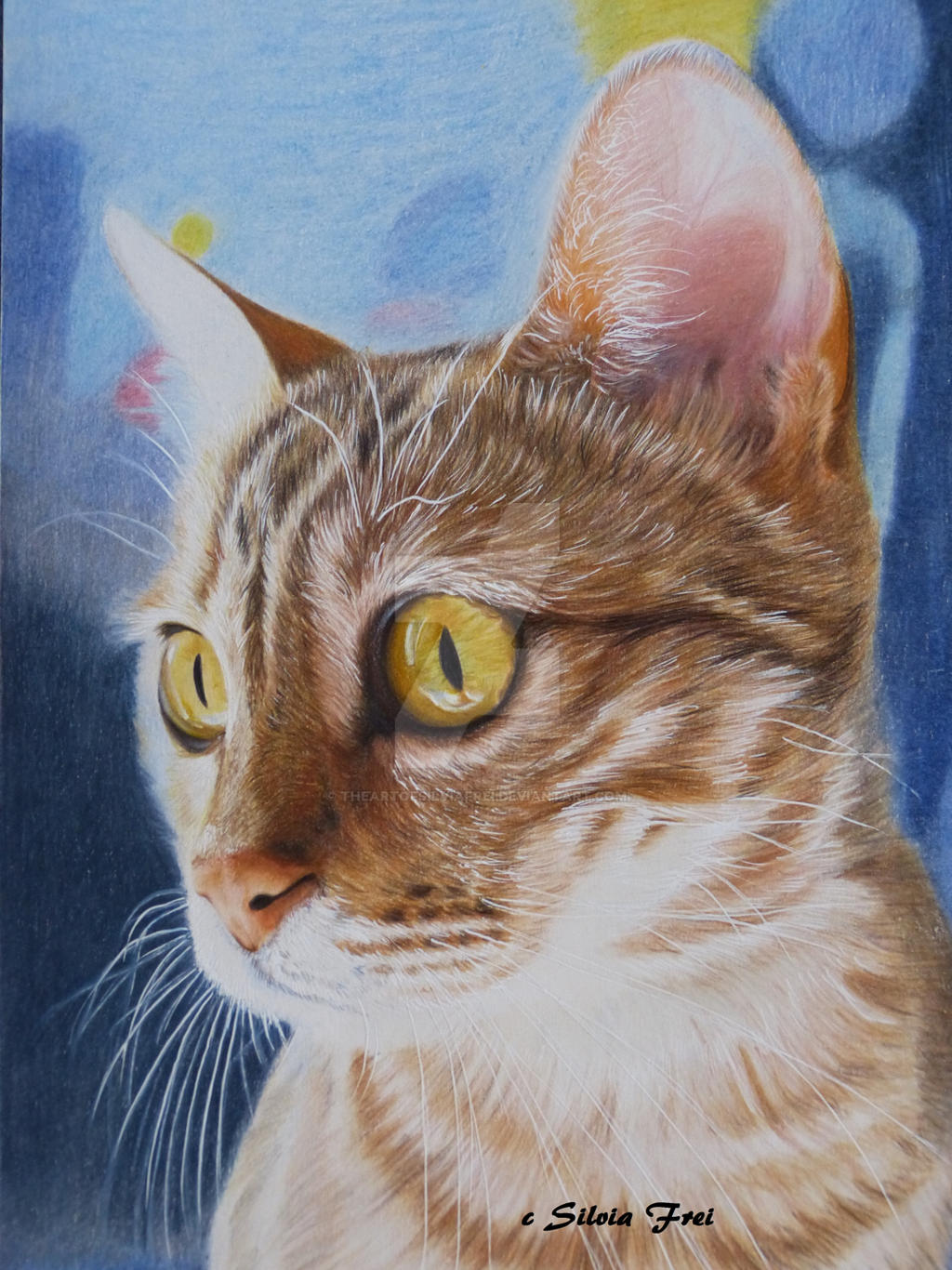 Bengal Cat Colored Pencil Drawing By Theartofsilviafrei On