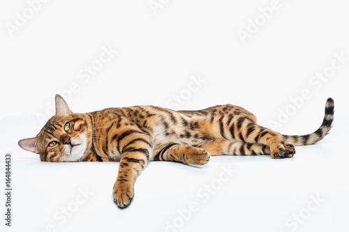 Bengal cats often have a spotted leopard like coat. Vector illustration for t shirts bengal tiger. Add to likebox 40334094 bengal cat lying on pavement.