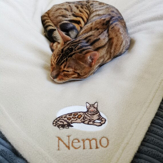 Personalised Bengal Cat Blanket In Brown And Silver Bengal Cat Design Soft Fleece 72 Cm X 100 Cm Personalized Kitten Bedding
