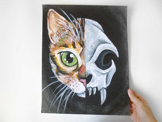 Sale Bengal Cat 11x14 Print Skull Art Gothic Decor Skeleton Wall Art Taxidermy Art Cat Lover Pet Portrait Animal Gift Clearance