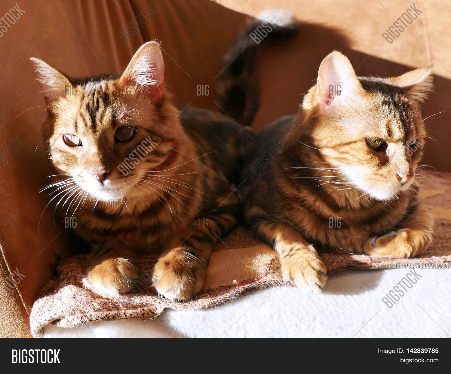 Bengal Cat Kitten Relaxing With Sibling Stock Photo