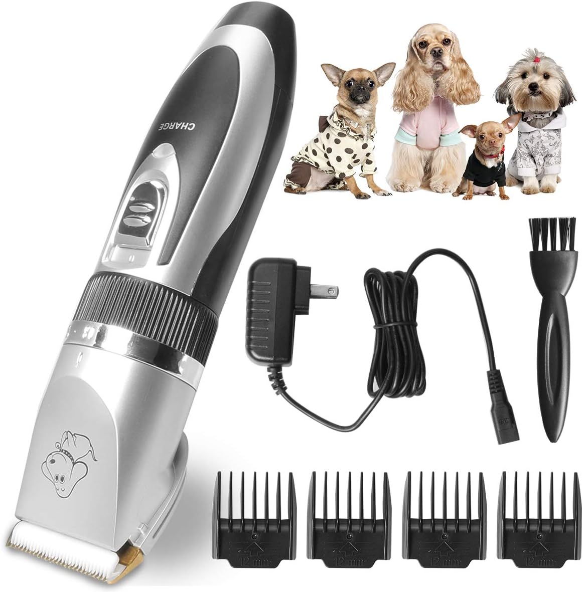 Vooneen Dog Grooming Clippers Pet Hair Remover Clippers Rechargeable Cordless Dog Hair Trimmer Accessories Professional Tool With 4 Comb Guides